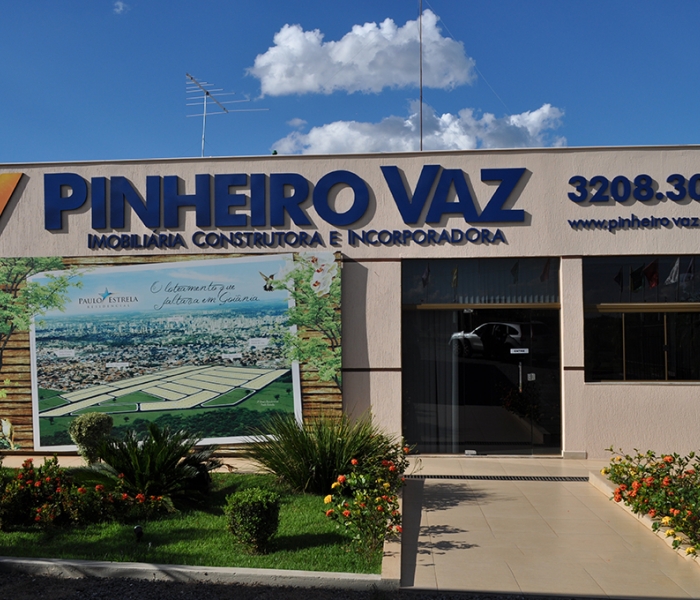 A Pinheiro Vaz Imobiliária Construtora e Incorporadora atua no mercado imobiliário e tem como objetivo principal o ramo de loteamentos urbanos. Com uma equipe há mais de 30 anos no mercado, já lançou mais de 25 mil unidades distribuídas em vários loteamentos em Goiânia, Aparecida de Goiânia, Inhumas e Goianápolis.